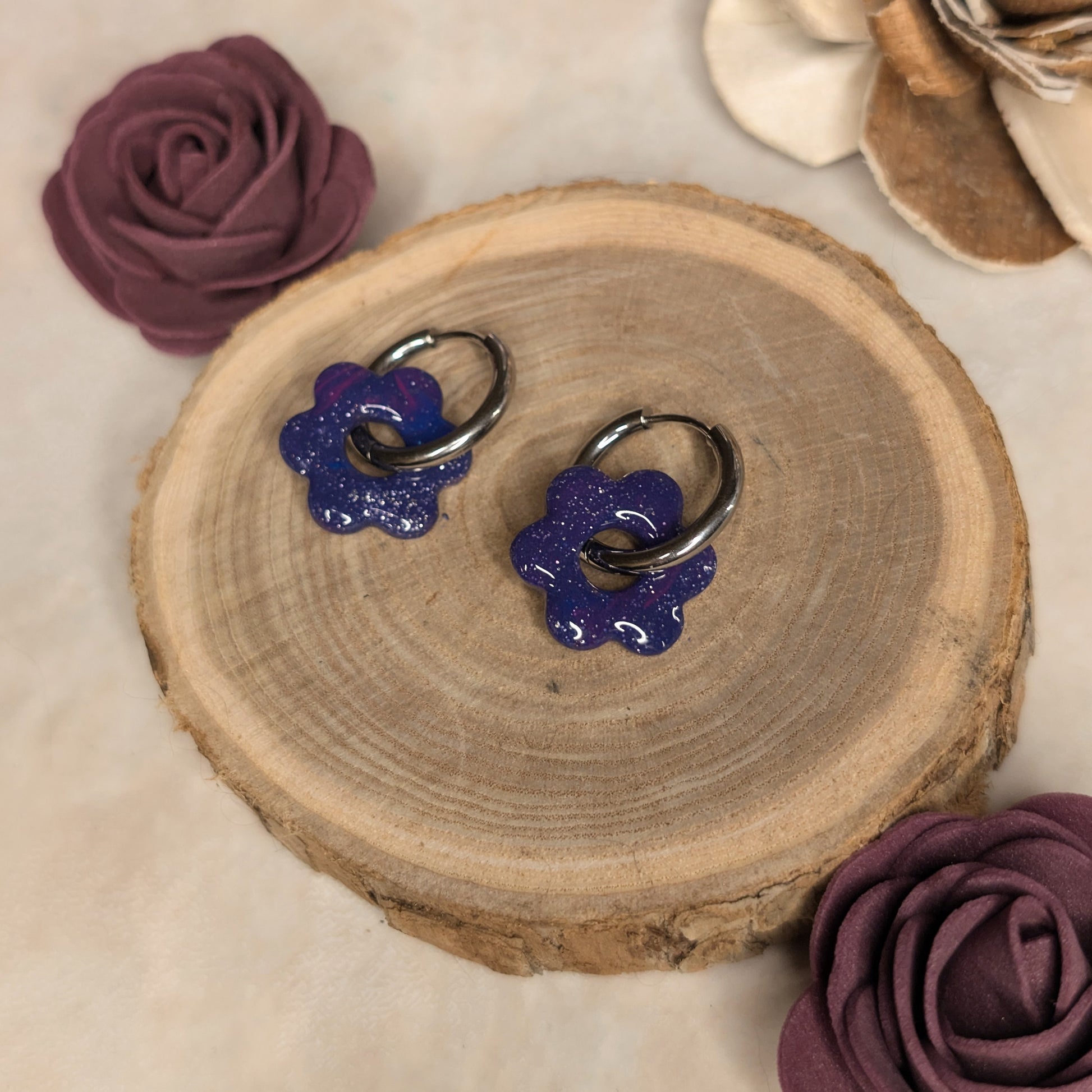 Pampilles galaxie mauve et bleu nuit pailleté.