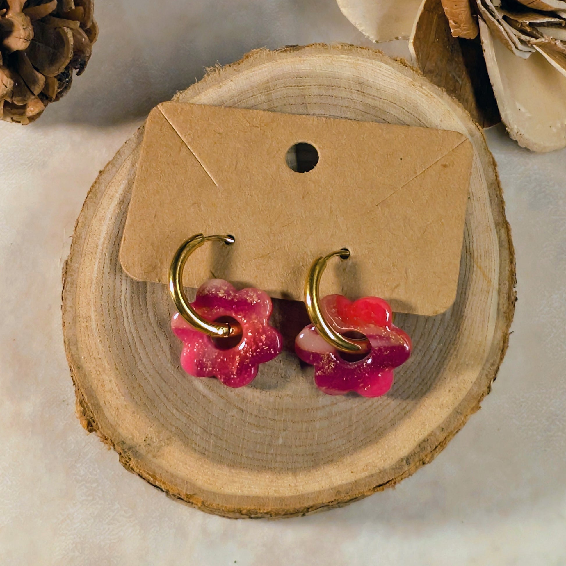 • Couleurs : rose, violet, rouge et paillettes dorées